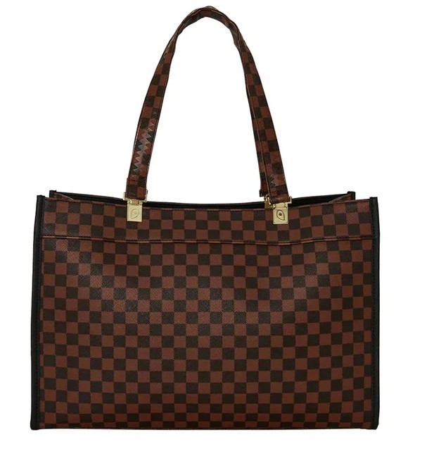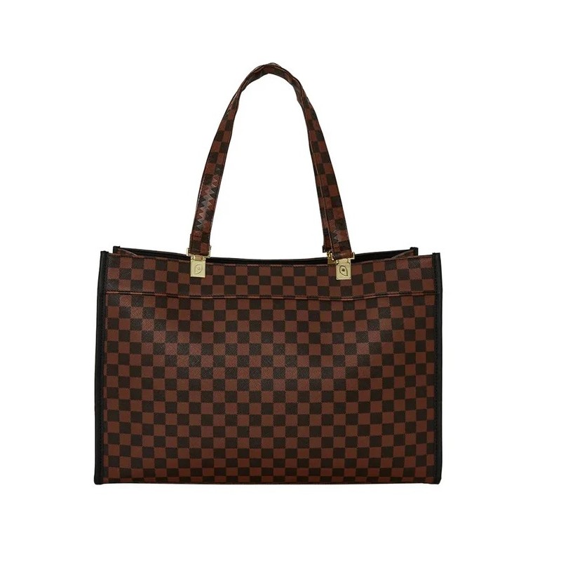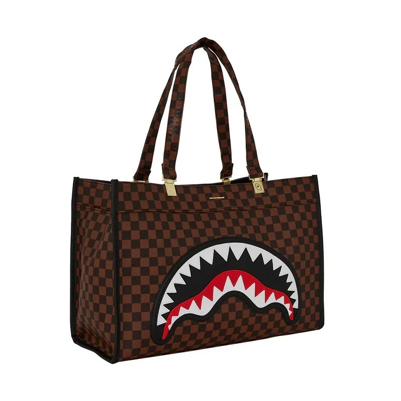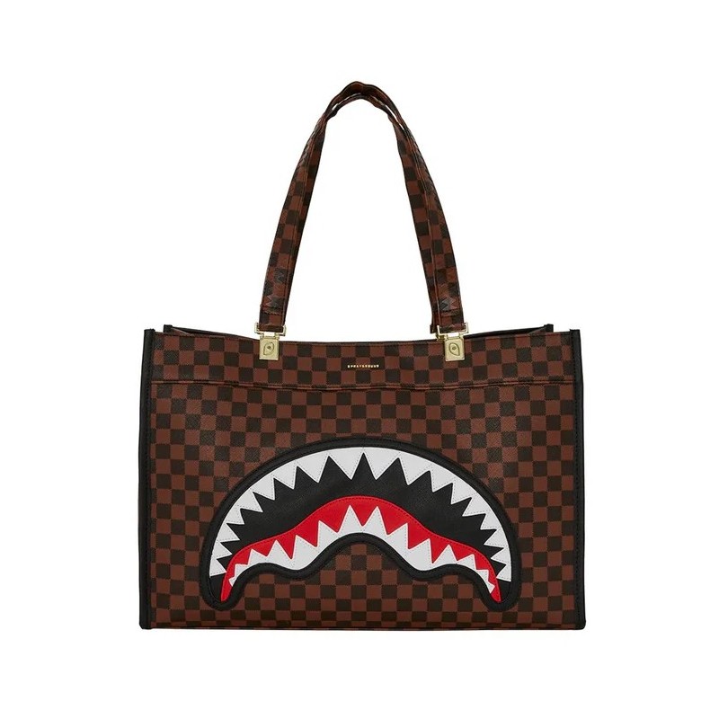 La borsa tote Sprayground Sawtooth Sharks in Paris Tortuga è l’accessorio perfetto per chi ama uno stile deciso e contemporaneo. Caratterizzata dall'iconico motivo a scacchi marrone e dal graffiante dettaglio dello squalo dentato sul davanti, unisce funzionalità e personalità in un design audace.