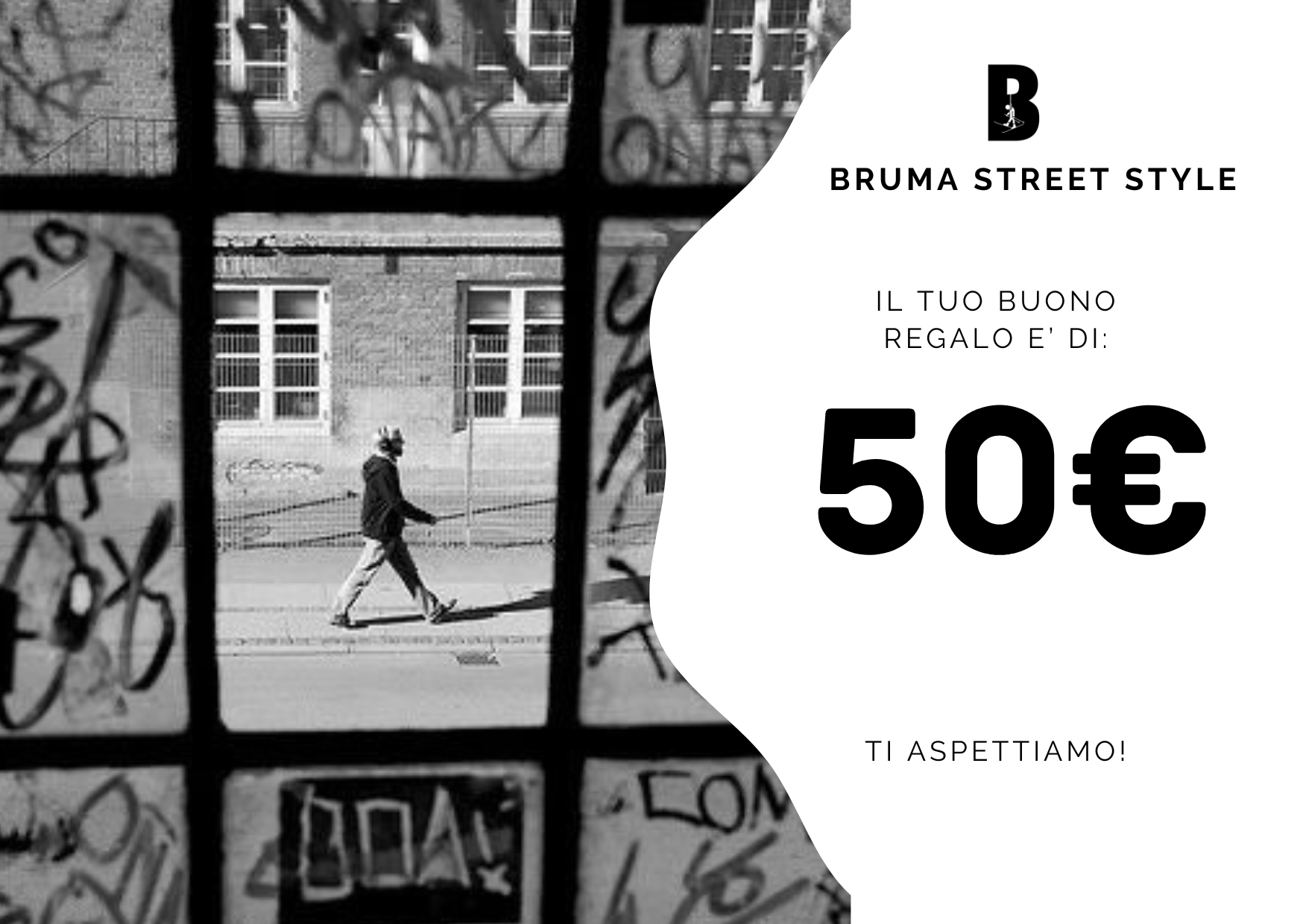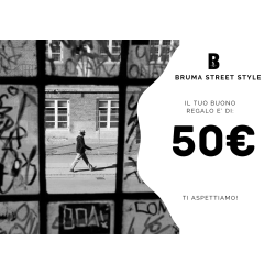 BUONO REGALO INSTORE: Valido esclusivamente presso i negozi Bruma Street di Viterbo e Tarquinia. Dopo l'acquisto riceverai una email contente la conferma di acquisto, con allegato il buono pronto per essere stampato o da spedire a chi vuoi tu. Consigliamo dopo l'acquisto di personalizzare il Buono Regalo con il nome del destinatario indicandolo nelle note durante la procedura di acquisto.