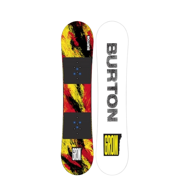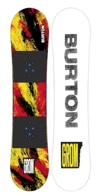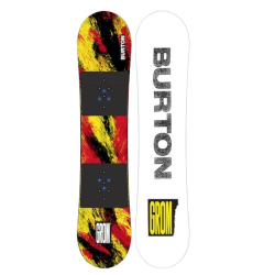 Snowboard All Mountain per ragazzi. La nostra tavola più adatta ai principianti. La nostra tavola più adatta ai principianti, la Burton Grom Snowboard per bambini, è pensata per far alzare i bambini e farli surfare il più velocemente possibile. Ciò che la rende un'ottima tavola per imparare è la combinazione ideale per i principianti di una forma anti-controspigolo e del flex più morbido possibile, così che anche i rider più leggeri possano padroneggiare curve e frenate.