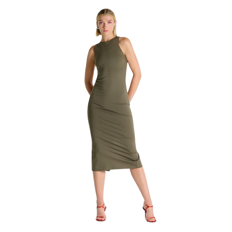 Questo abito fluido si distingue per la linea morbida,svasata e comoda. Valorizza il portamento con uno stile minimal ma di forte presenza scenica. Il tessuto aggiunge freschezza, riflettendo la luce con naturale grazia. Questo abito è perfetto per affrontare le giornate più calde con raffinatezza. L’assenza di maniche e la linea libera lo rendono ideale per ogni corporatura, assicurando comfort e versatilità. Da indossare con sandali e clutch rigida per un evento serale all’aperto, oppure con espadrillas intrecciate e orecchini pendenti per un aperitivo sul mare. Perfetto per serate estive eleganti, eventi informali con un tocco chic, vacanze al mare o in città d’arte o aperitivi.